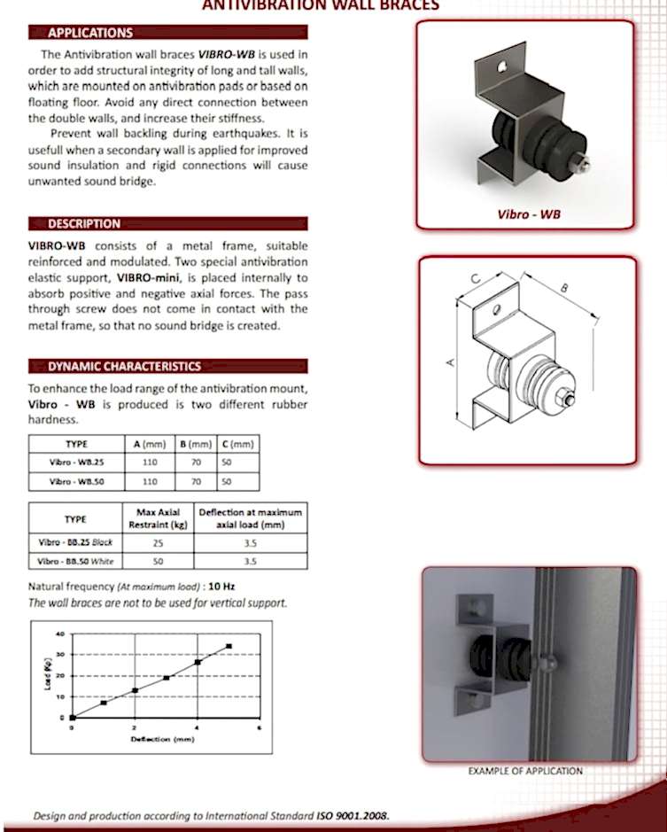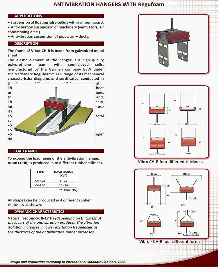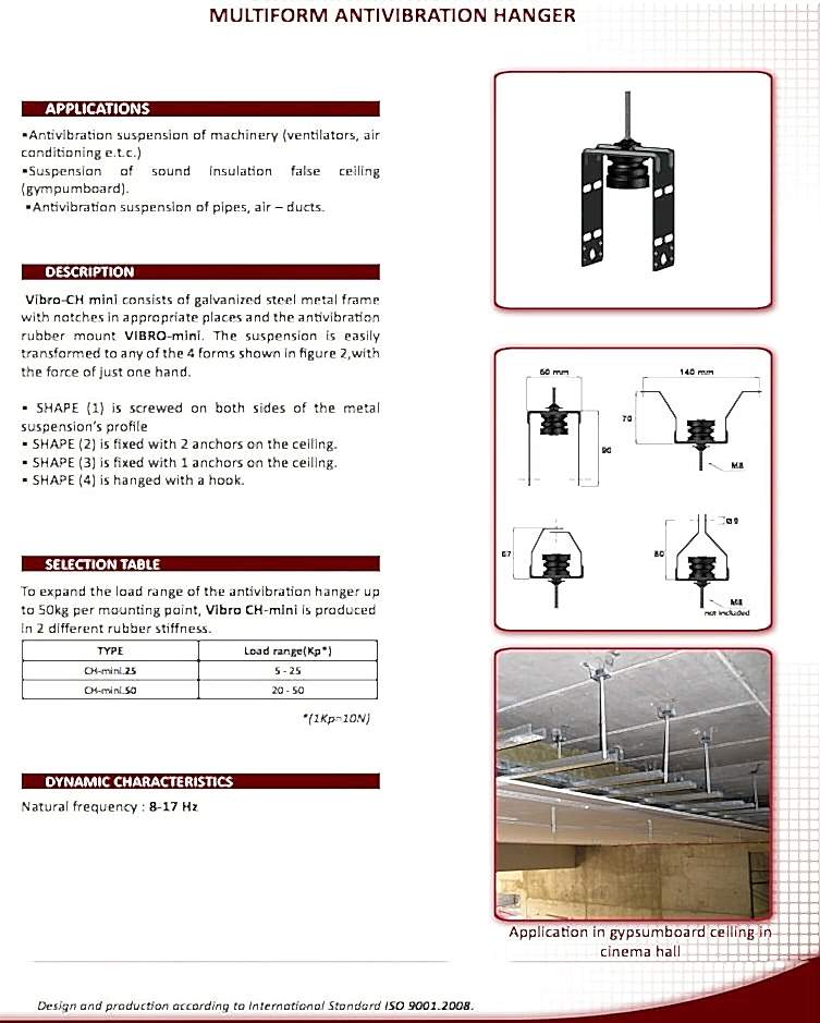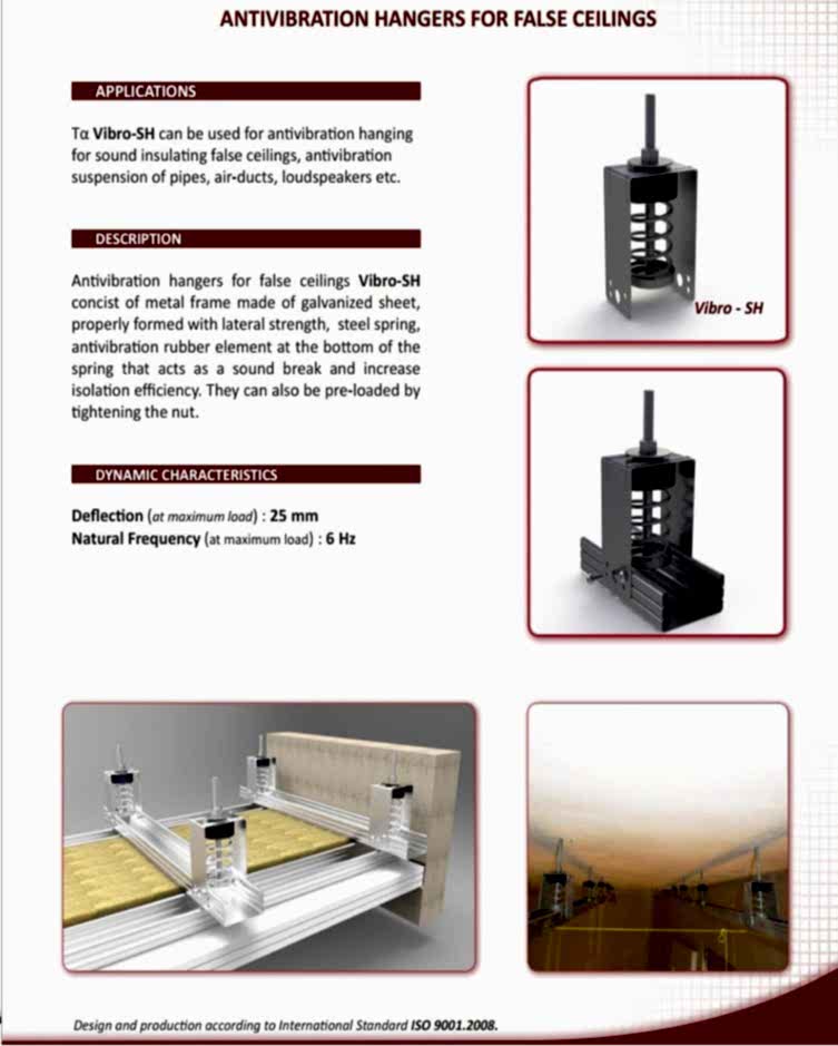Akustik Titreşim İzolatörleri : Sismik rahatsızlıklar esnasında cihaz hareketini sınırlamak için çok yönlü esnek sınırlayıcılarla yay titreşim yalıtımını birleştirmek için mekanik cihazlar için Entegre Sismik Montaj Elemanları tasarlanmıştır.