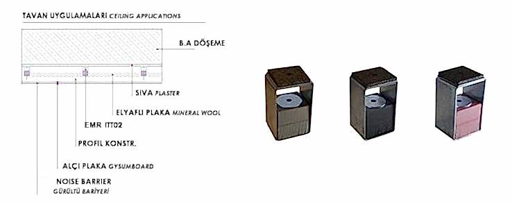 Akustik İzolatörler Alanları : Tüm titreşim ve darbe kontrolü ve sismik etkileşimlerde süspansiyon ve antivibrasyonlarda.